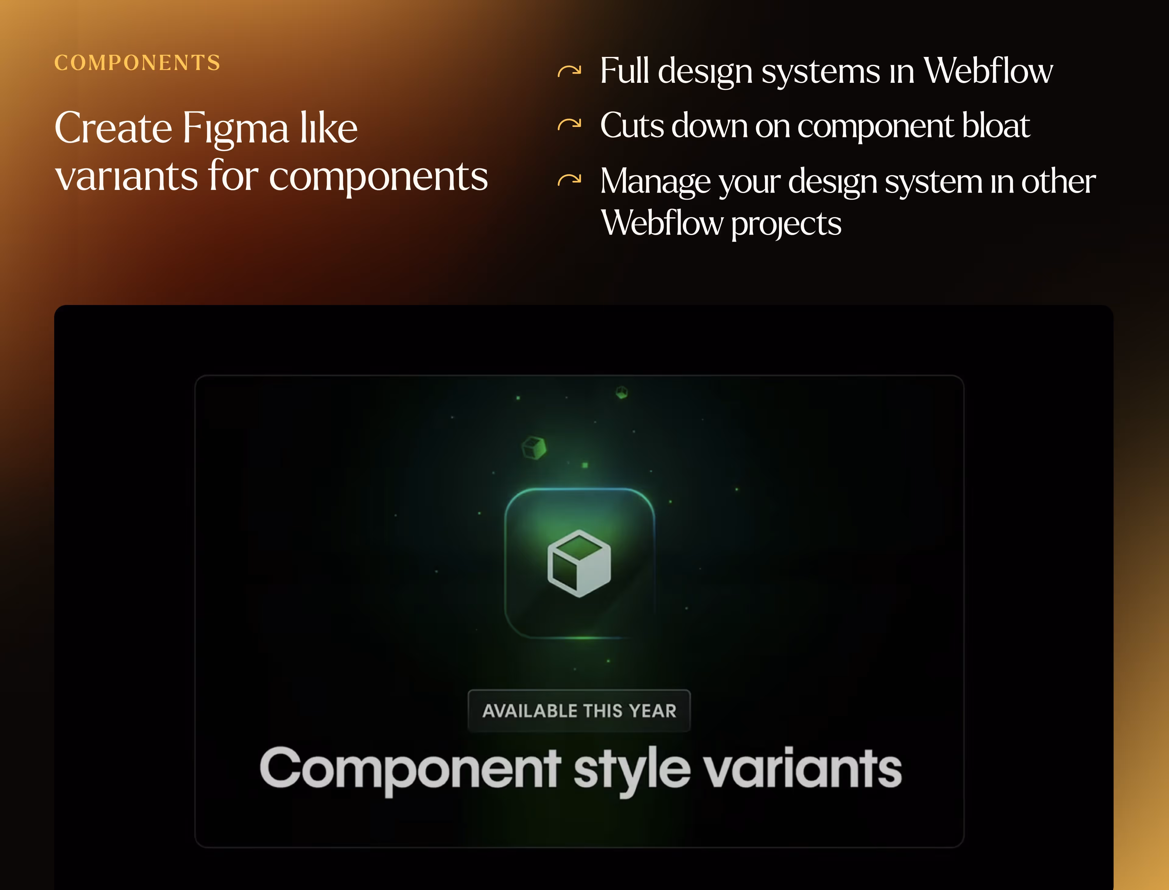 Webflow rolled out multiple updates to enhance the design and management experience, from component style variants in design systems to more scalable CMS APIs. These updates aim to simplify the process of maintaining brand consistency and managing large-scale content.